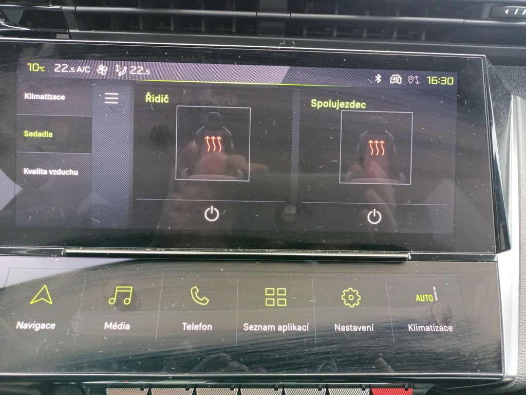 Navíc, 3D navigace, Přední a zadní parkovací asistent + couvací kamera, Vyhřívané sedačky, Slepý úhel, H.F. přístup a startování, Alu kola.